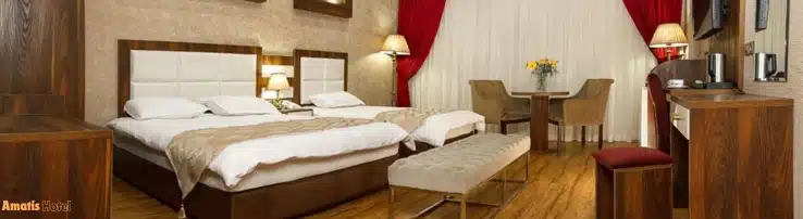 هتل آما تیـــــس، واقع در قلب تهران، ایران، یک هتل مدرن سه ستاره است که به خاطر اقامتگاههای راحت و شیک خود شناخته میشود. این هتل اتاقهایی با امکانات مدرن از جمله اینترنت پرسرعت و تلویزیونهای صفحهتخت ارائه میدهد. میهمانان میتوانند در رستوران هتل از طیف متنوعی از غذاها لذت ببرند. علاوه بر این، موقعیت مرکزی هتل دسترسی آسان به جاذبههای اصلی تهران، مراکز خرید و اماکن فرهنگی را فراهم کرده و آن را برای مسافران کاری و تفریحی ایدهآل میسازد.